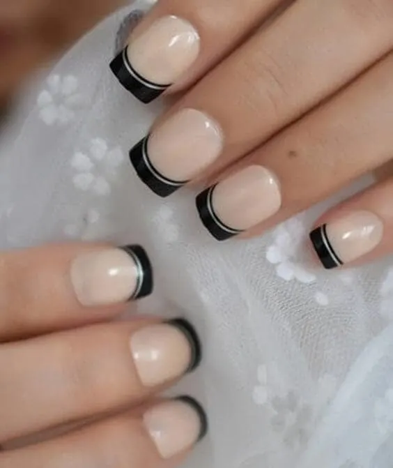 This black nail design is perfect for those who want to rock a punk look. Each hand has nails that are glossy with black French tips.