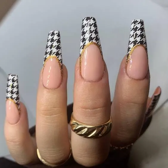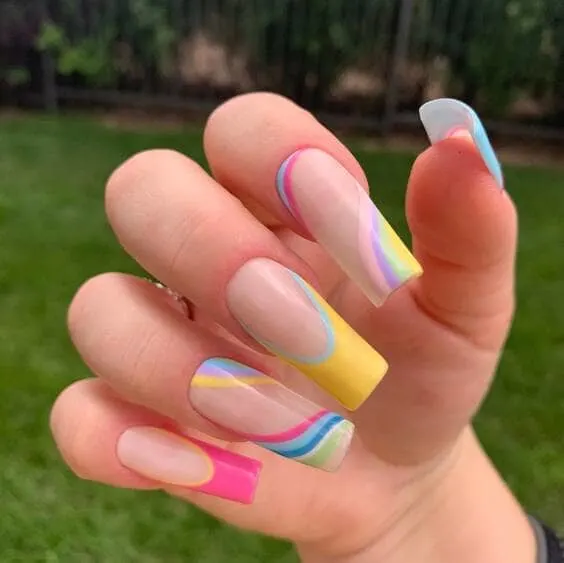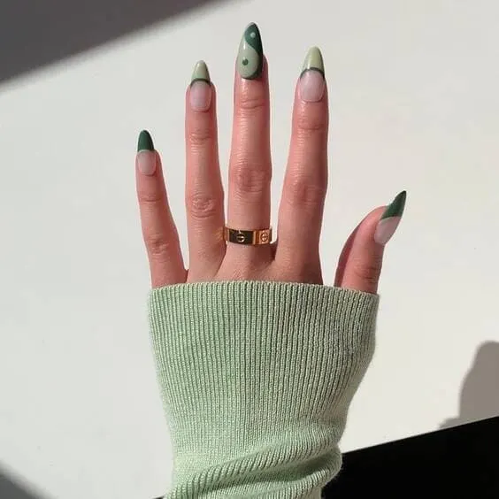 The French tip nail design is the tip of the nail painted in a complementary or opposite color to the base of the nail. It’s widely popular to give the illusion of longer nails.