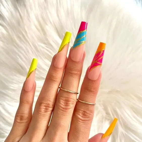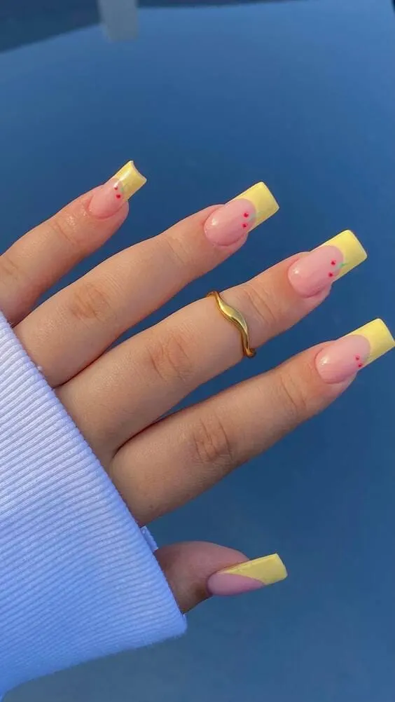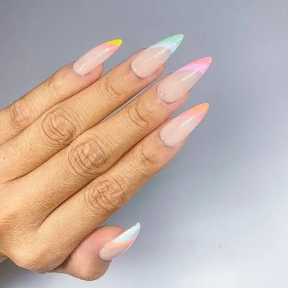 The french tip nail design is based on the idea that the tip of the nail should be painted in a complementary or opposite color to the base of the nail, to give the illusion of longer nails.