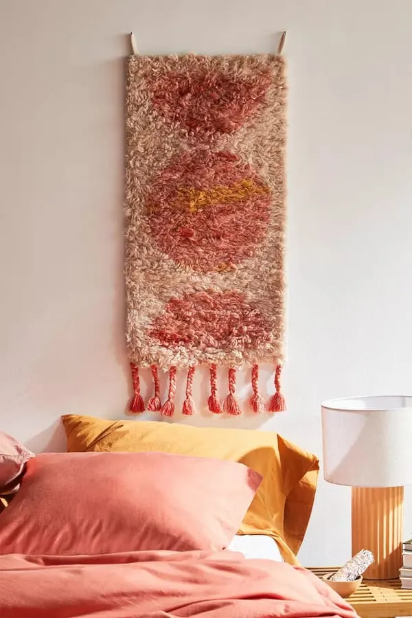 26. Mini Tufted Boho Flag Tapestry. Tufts of fluffy texture bring a major impact to this mini flag tapestry. Featuring bohemian motifs and fringe-trimmed edge with dual loops at upper corners for easy hanging. You can get this boho wall decor on Urban Outfitters