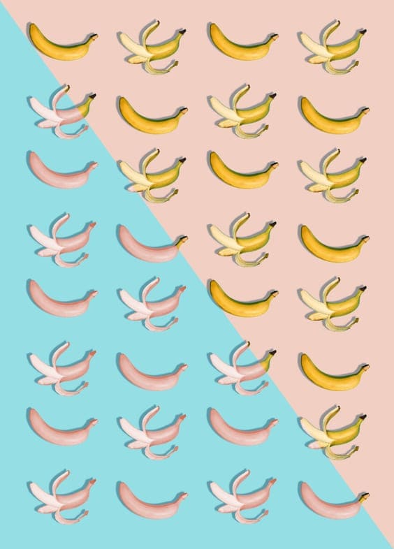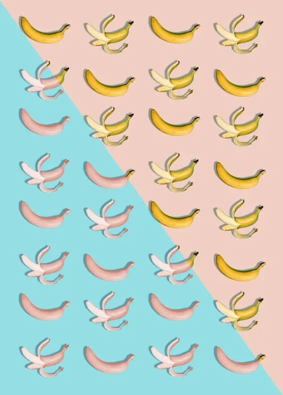 Pink and blue background with tropical bananas