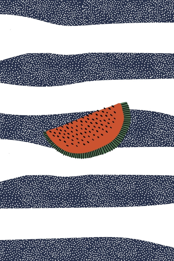 Blue and white stripes with watermelon background