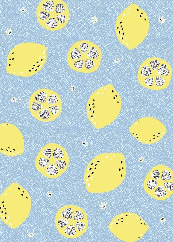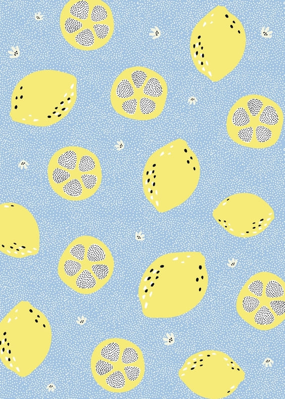 Bright yellow lemons with blue background wallpaper