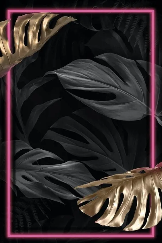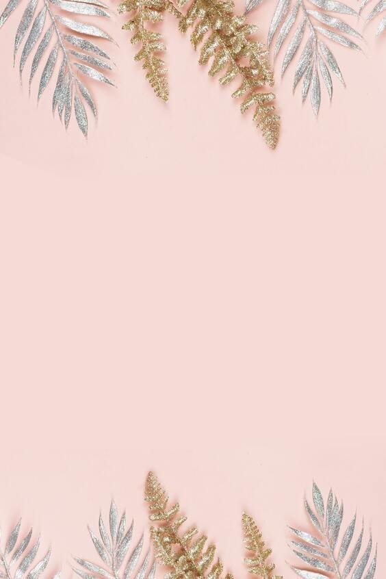 Gold tropical leaves pink border wallpaper