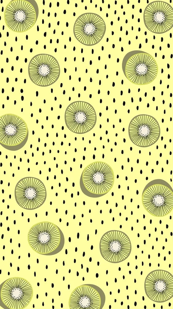 Bright yellow and green kiwis with polka dot background