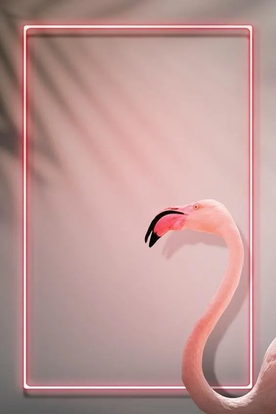 Pink tropical flamingo with pink neon border wallpaper