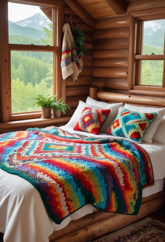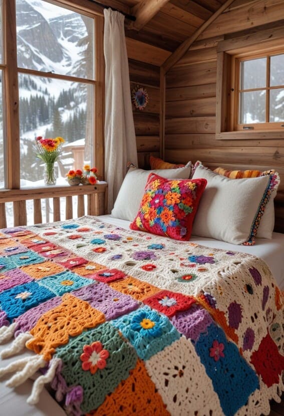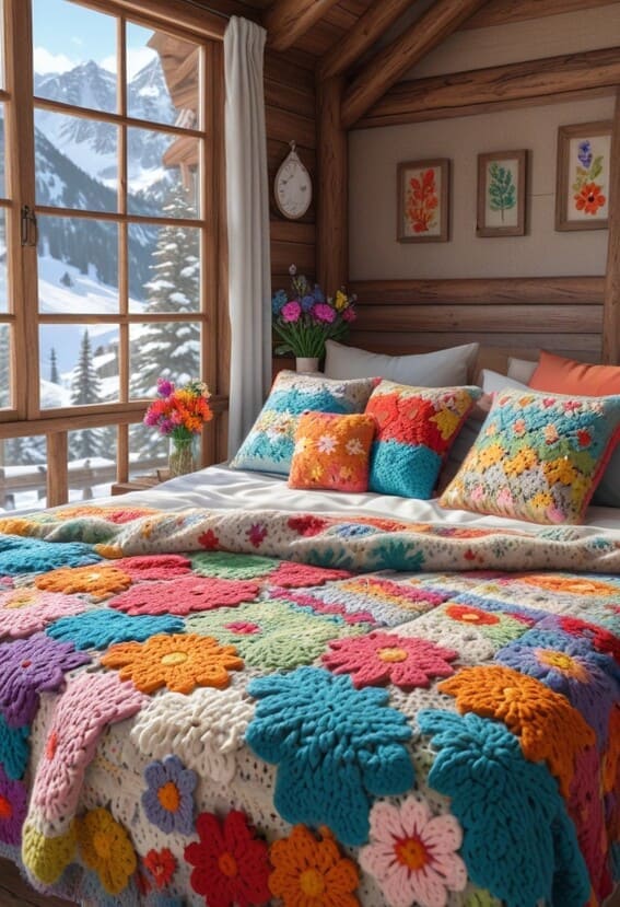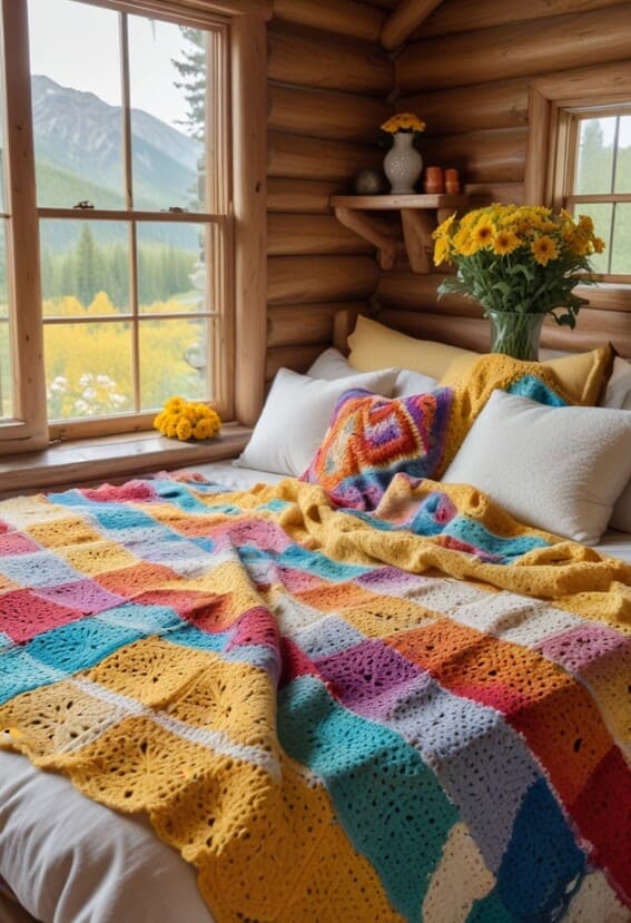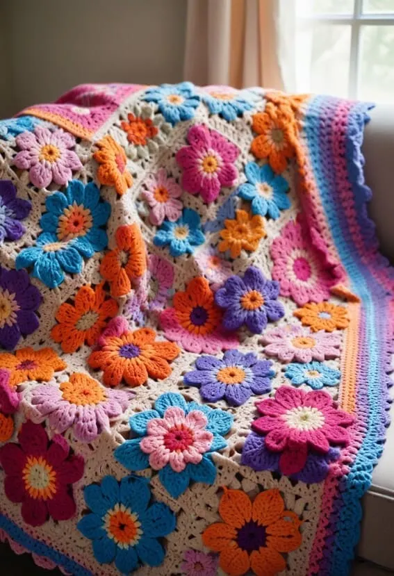 Choose yarns that reflect the blooming of flowers and clear blue skies to make an afghan that’s not just warm but also an impressive piece of art.