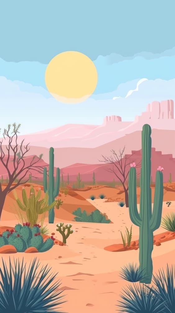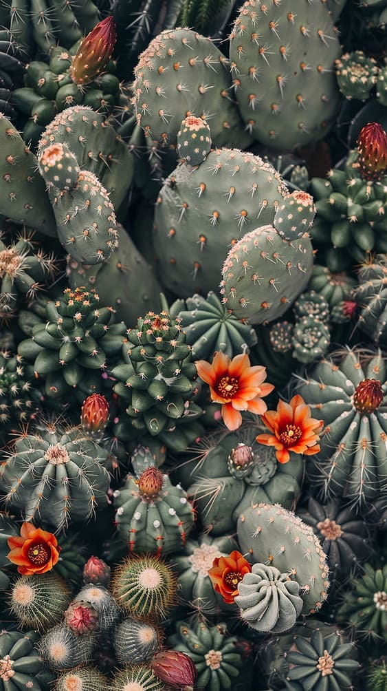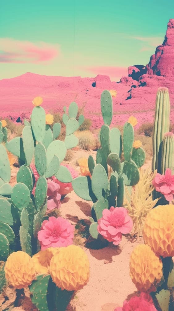Vibrant Home Screens: Cactus wallpapers work beautifully with app icons, offering a balance of bold visuals and functionality. Their earthy tones and natural textures provide a clean, organized feel.