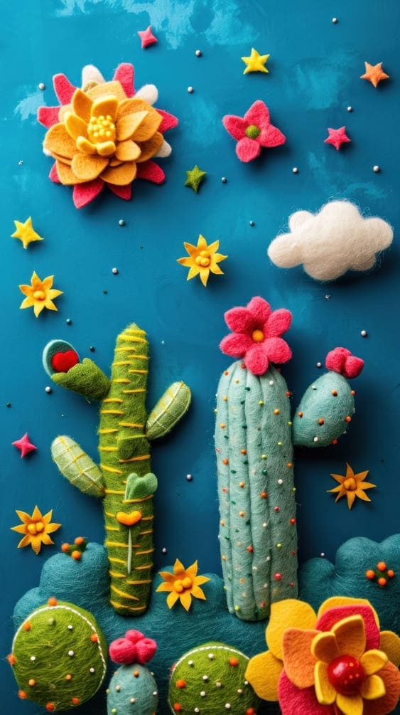 Playful Patterns: Bright, quirky cactus designs with bold colors or whimsical arrangements add a fun and creative touch to your screen.