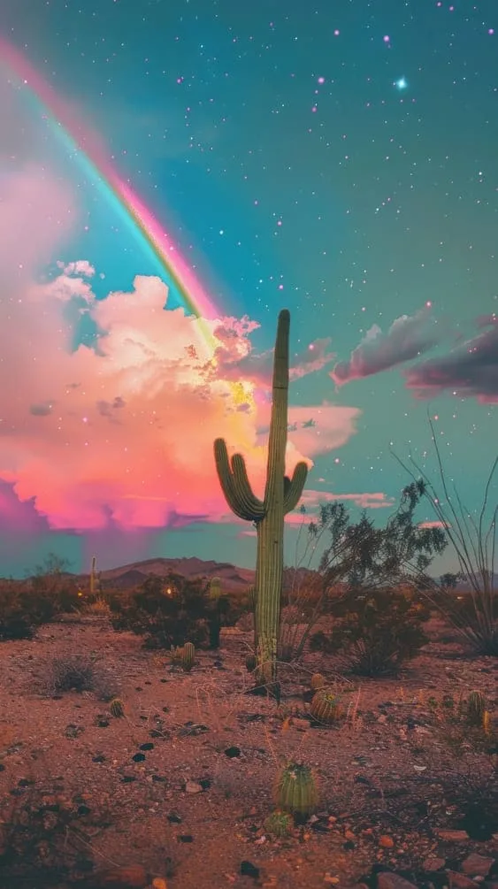 Vibrant Desert Landscapes: Photographic wallpapers of cacti against vivid desert skies bring your phone a sense of adventure and wonder.
