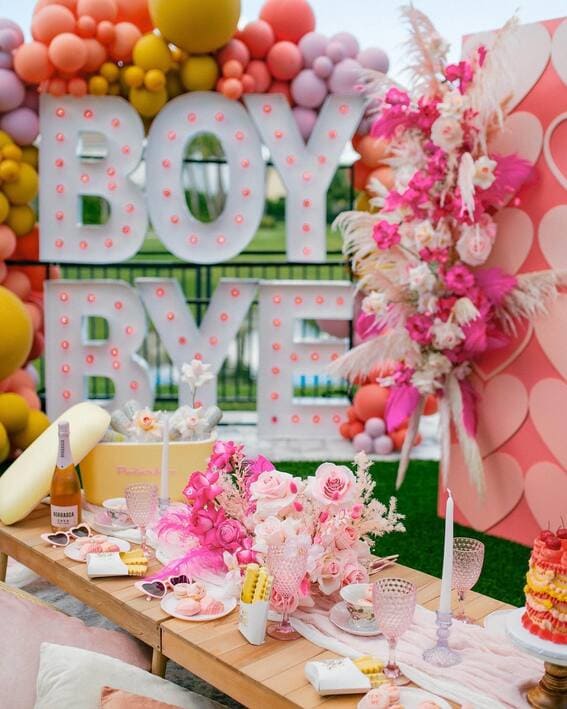 Making a huge statement that it’s a girls-only party is also a fun and creative decor piece!